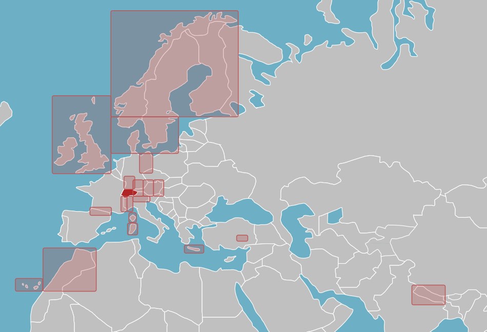 Gebiete, für die Wegdaten und POIs vorhanden sind.