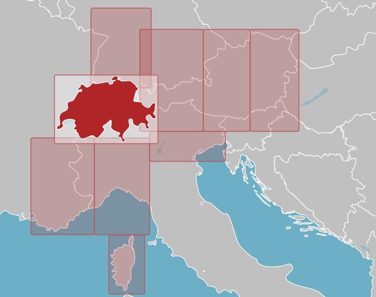 Wechseln Sie das Profil, zu "Weltweit" und bewegen Sie den Kartenmittelpunkt in ein Gebiet mit Abdeckung durch Swiss Pro Map.