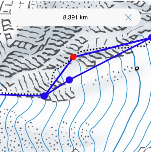 Einfach Strecken und Flächen zeichnen und messen. Mit dem Finger Strecke oder Fläche auf die Karte zeichnen.