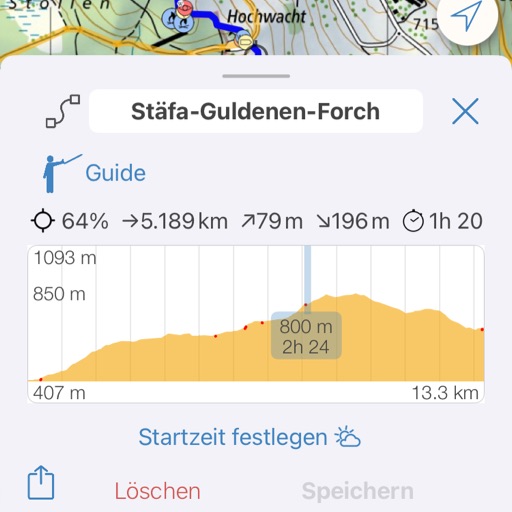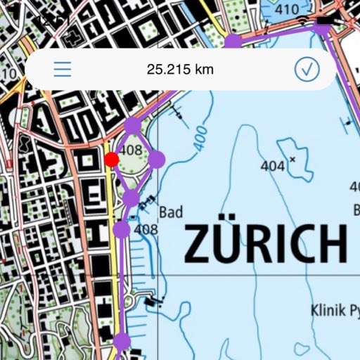 Swiss Pro Map findet nicht nur Routen entlang Wegen, Sie können Routen auch beliebig manuell erfassen. Tracks lassen sich im Hintergrund aufzeichnen. Alle Routen und Tracks können bearbeitet und geändert werden.