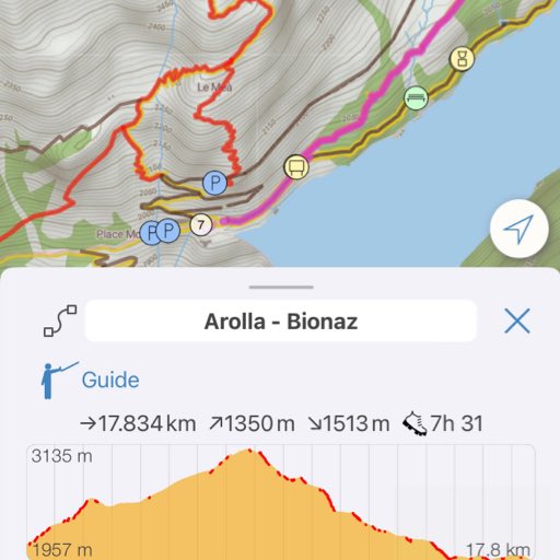 Swiss Pro Map findet automatisch Routen entlang von Wanderwegen, Wegen und Strassen. Swiss Pro Map zeichnet Tracks im Hintergrund auf. Eigene Routen können erstellt und bearbeitet werden. Alle Routen, Tracks und markierte Orte können exportiert und geteilt werden.