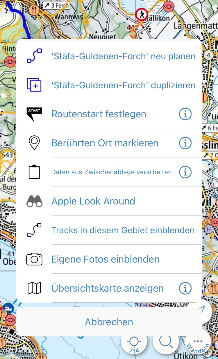 Wenn Sie zum Beispiel so auf eine Route drücken, können Sie diese neu planen oder duplizieren.