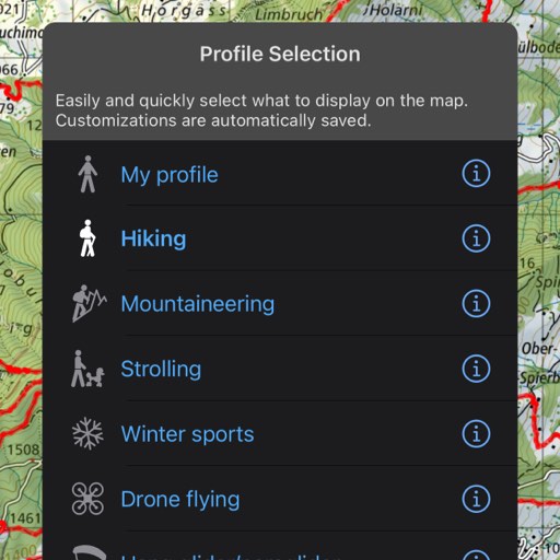 Whether hiking, mountaineering, flying, skiing or cycling - the profiles provide presets for your outdoor activity.