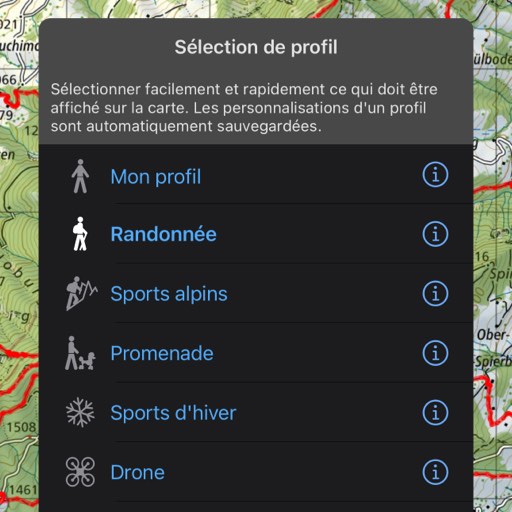 Que vous fassiez de la randonnée, de l'alpinisme, de l'aviation, du ski ou du vélo, les profils vous proposent des préréglages pour votre activité de plein air.